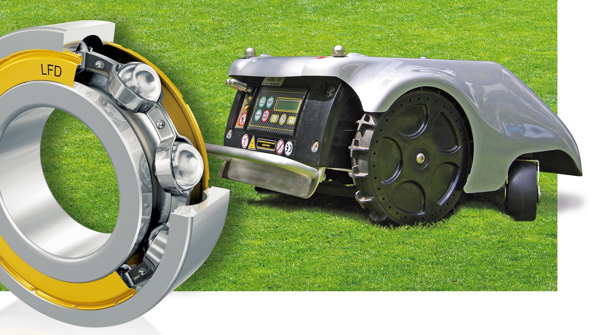 Ein Rasenmäher-Roboter mit kugelgelagerten Räder kann den Kraftaufwand des Schiebens im Vergleich zu solchen mit Gleitlagern deutlich reduzieren. Die eingesetzten Wälzlager müssen hohe Anforderungen an Belastbarkeit sowie Korrosions- oder Temperaturbeständigkeit erfüllen.